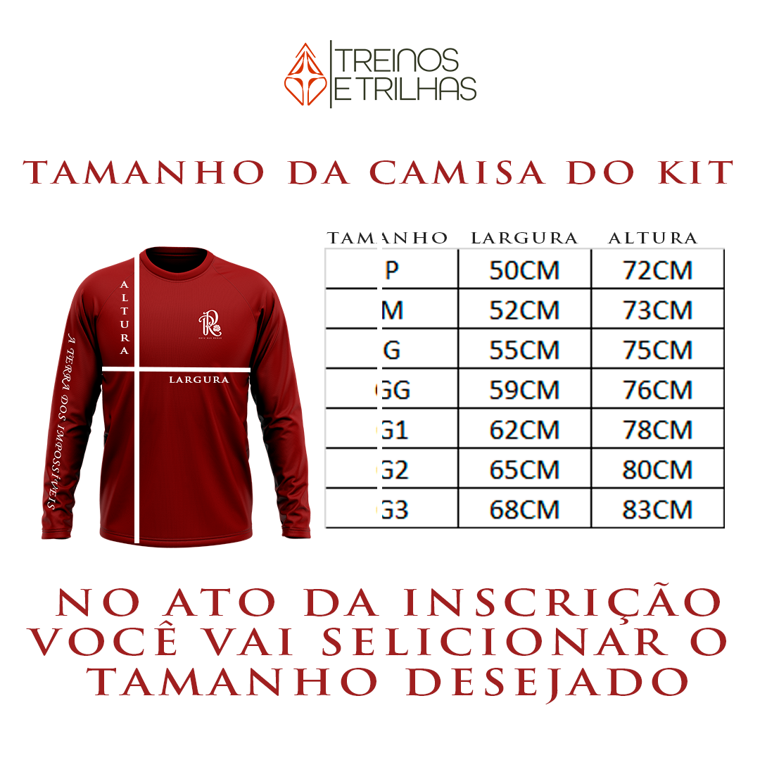 - Kit Peregrino (verificar o tamanho da camiseta na imagem abaixo)